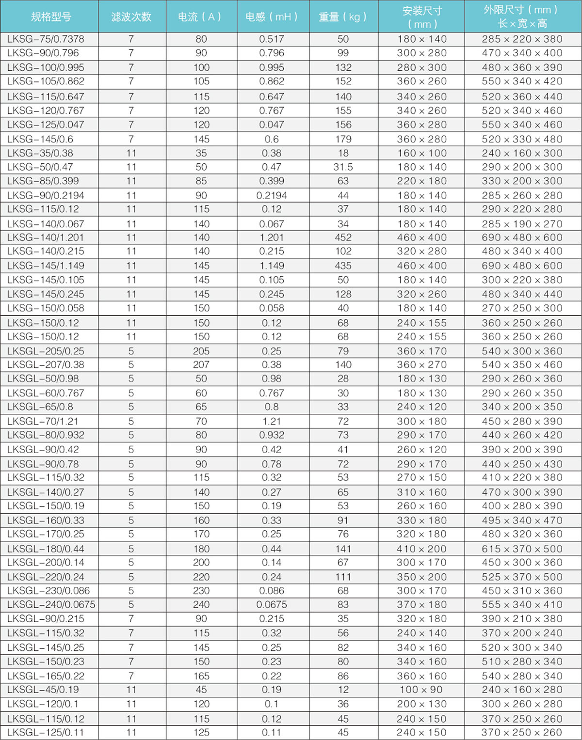該濾波電抗器用于低壓濾波柜中,與濾波電容器相串聯(lián),調(diào)諧至某一諧振頻率,用來(lái)吸收電網(wǎng)中相應(yīng)頻率的諧波電流。低壓電網(wǎng)中有大量整流、變流、變頻裝置等諧波源,其產(chǎn)生的高次諧波會(huì)嚴(yán)重危害主變及系統(tǒng)中其他電器設(shè)備的安全運(yùn)行。濾波電抗器與電容器相串聯(lián)后,不但能有效地吸收電網(wǎng)諧波,而且提高了系統(tǒng)的功率因數(shù),對(duì)于系統(tǒng)的安全運(yùn)行起到了較大的作用。
