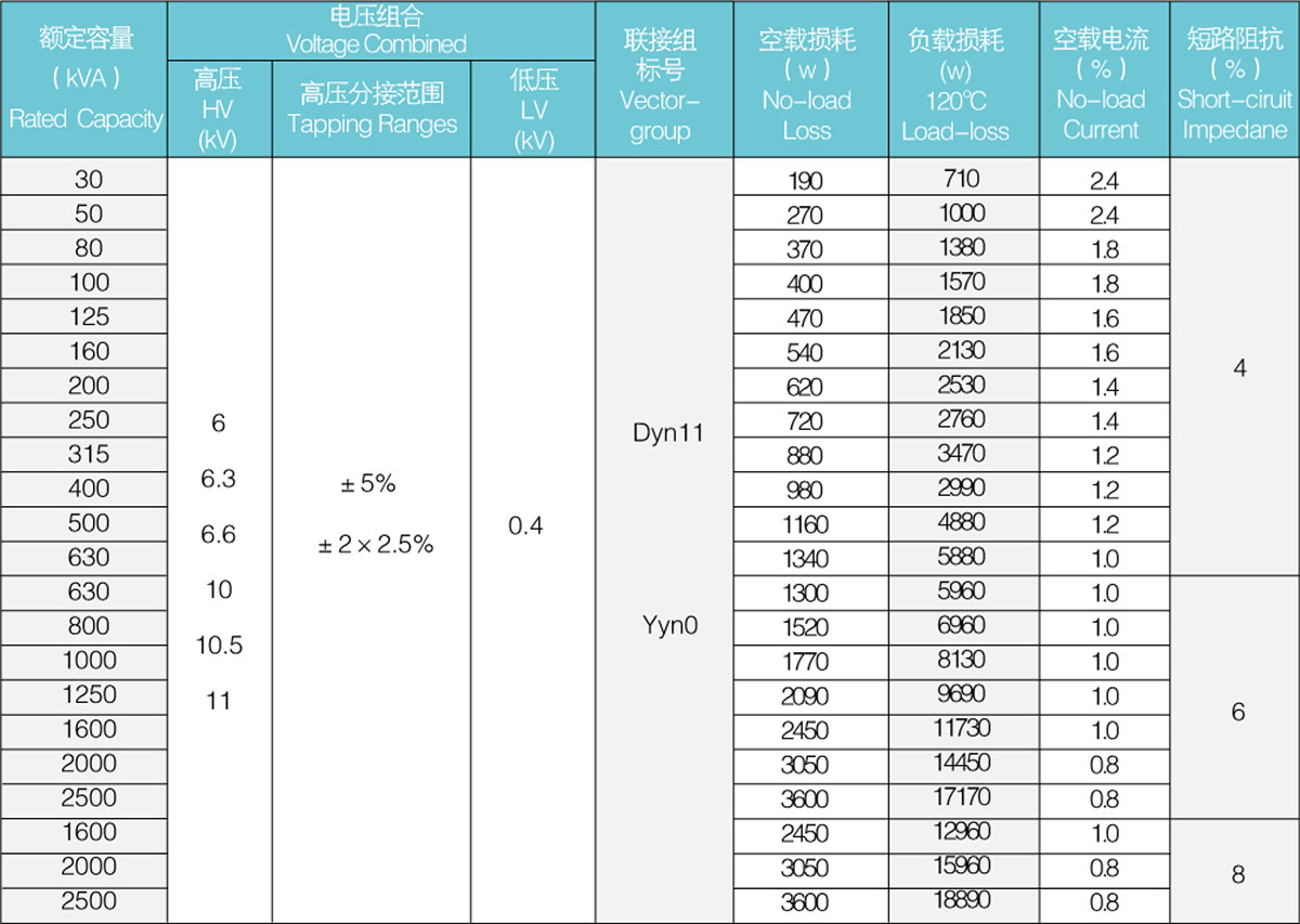損耗低,局部放電量低、噪音小、散熱能力強,強迫風冷條件下可以150%額定負載運行。配備有完善的溫度保護控制系統(tǒng),為變壓器安全運行提供可靠保障。